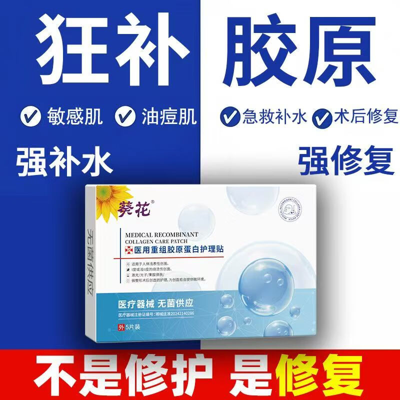 葵花医用重组胶原蛋白保湿敷贴女痤疮痘印修护敏肌补水晒后修护 2盒装共10贴【特惠装90%人的选择】¥ 19.9去领券