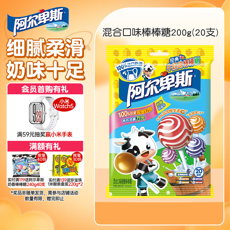 阿尔卑斯 混合口味棒棒糖200g(20支) 休闲零食 儿童水果果汁硬糖礼物分享¥ 8.73去领券