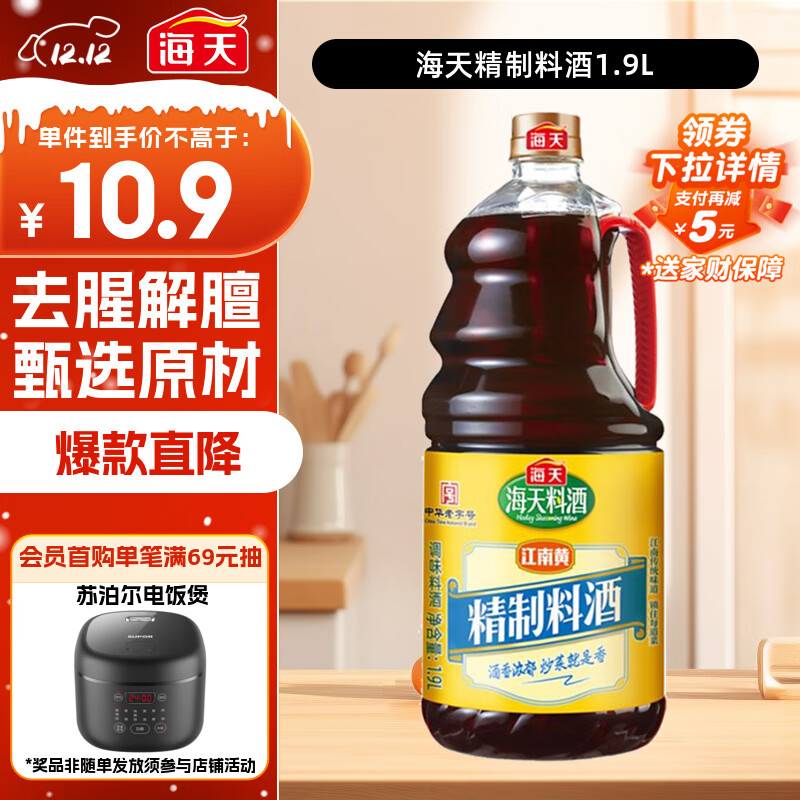 海天 料酒 1.9L 0添加防腐剂 调味品 酒香浓郁 去腥解膻 家用¥ 9.8去领券