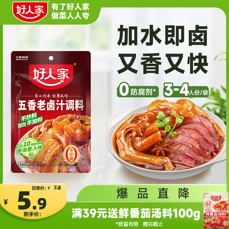 好人家五香味卤料调料 卤肉鸭脖鸡爪方便调味品 120g 3-4人份¥ 5.9去领券