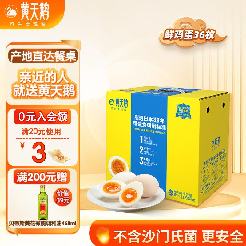 黄天鹅可生食鲜鸡蛋36枚礼盒装3.8斤源头直发礼品 36枚¥ 84.9去领券