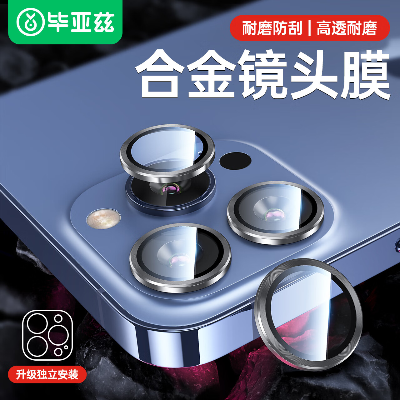 毕亚兹 适用苹果13Pro/13ProMax镜头钢化膜 iphone13promax后摄像头保护膜【3颗】金属边框鹰眼黑 JM222¥ 15.83去领券