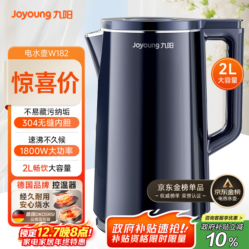 九阳(Joyoung)热水壶烧水壶电水壶 2L速热304不锈钢一体无缝内胆 0胶水开水壶 K20FD-W182¥ 89去领券