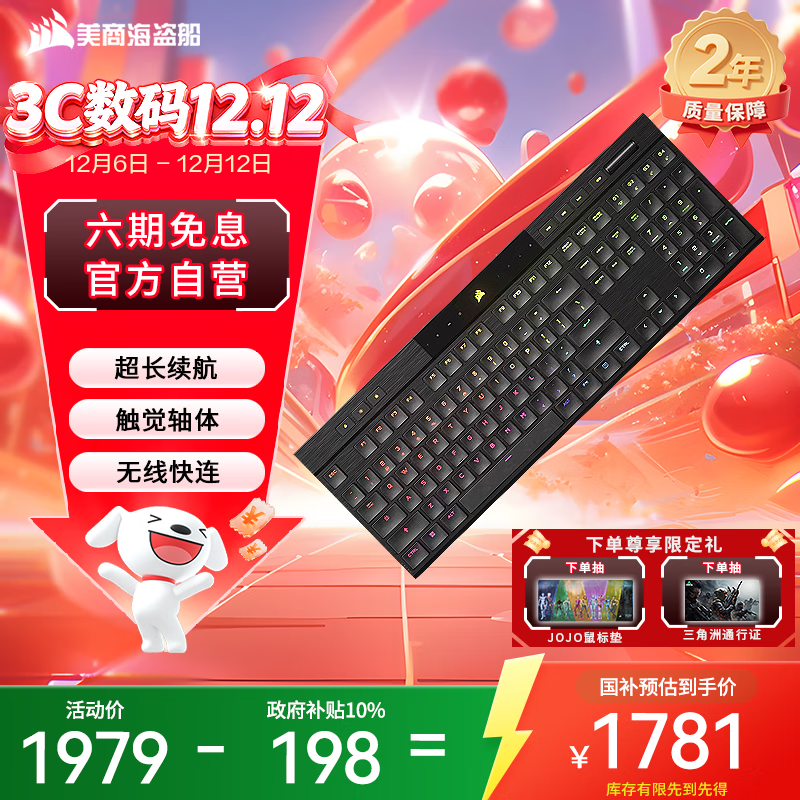 美商海盗船 (USCORSAIR) K100 AIR 无线机械键盘 超薄触觉轴 RGB灯效 游戏/办公 无线/有线连接 全尺寸¥ 1979去领券