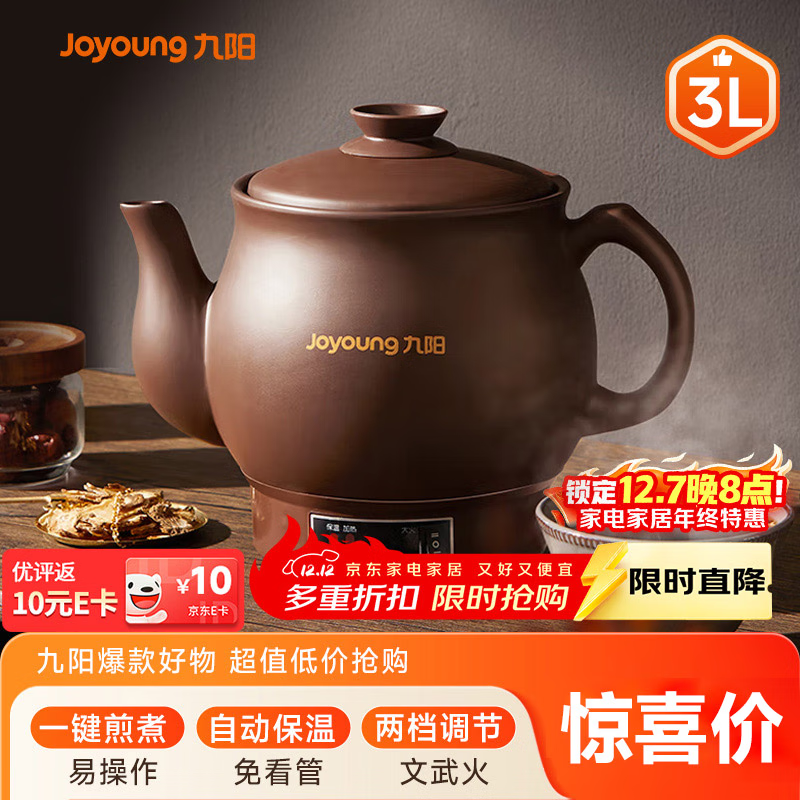 九阳(Joyoung)煎药壶 中药壶中药锅熬药罐 3L大容量一体式全自动陶瓷电砂锅智能家用养生壶炖药煲电药壶GD111¥ 89去领券