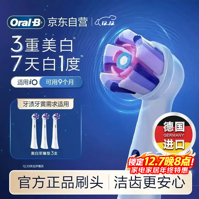 欧乐B电动牙刷头原装iO系列成人美白至臻型3支WW-3适用iO9/iO7/iO5/iO3/iO2系列深度清洁【正品刷头】¥ 179去领券