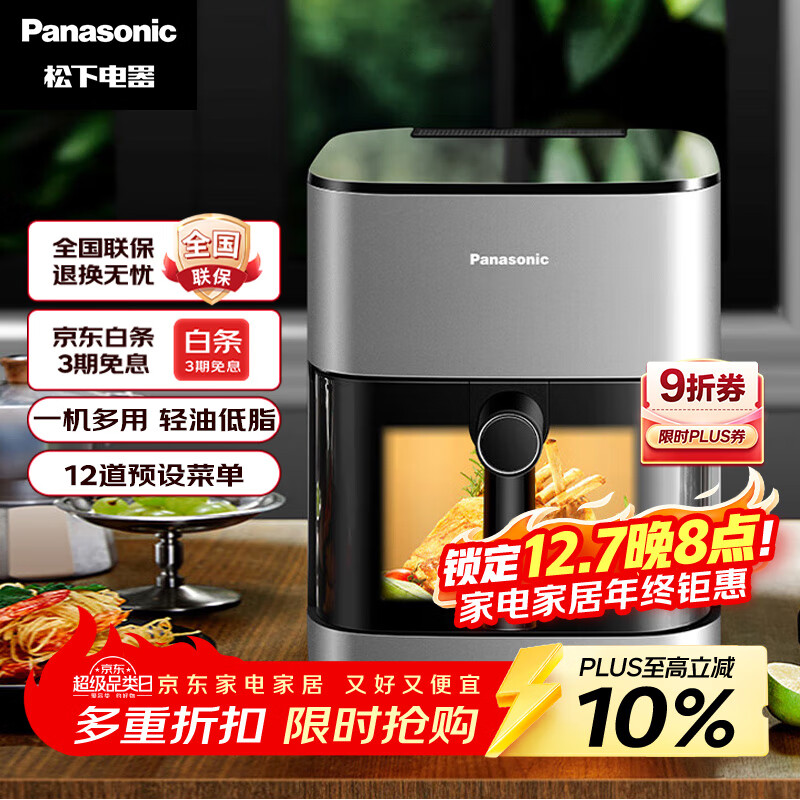 松下(Panasonic)多功能全景可视窗家用全自动无油免翻面空气炸锅5升大容量NF-HC500-S¥ 759去领券
