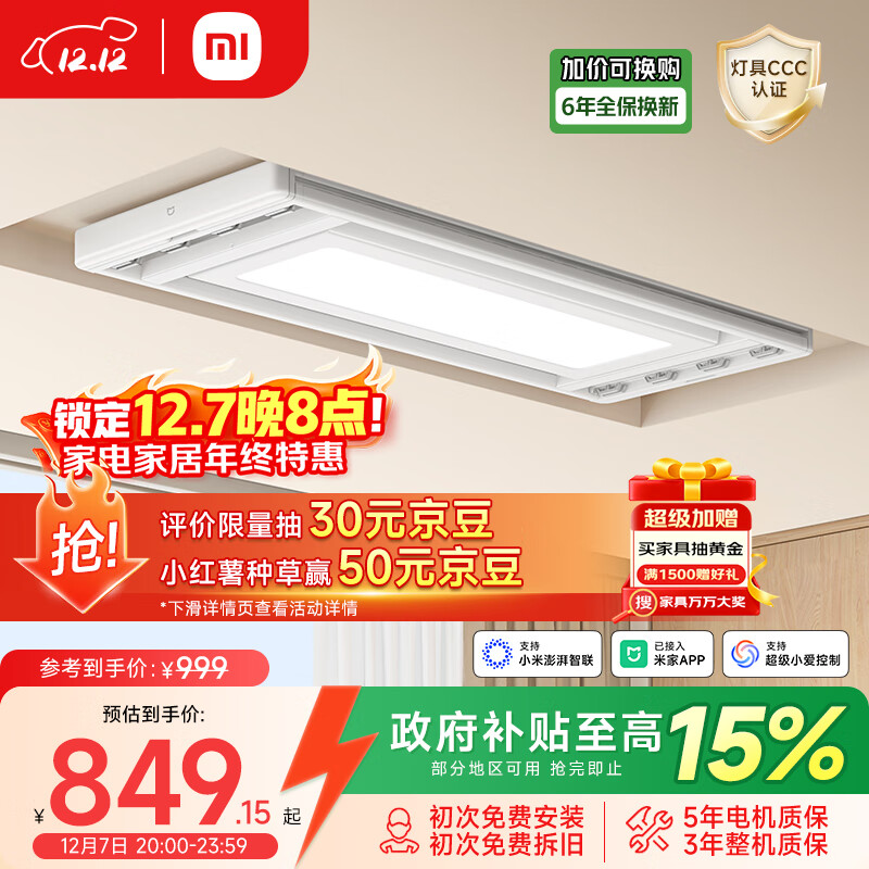 米家智能晾衣机2【国家补贴】 小米电动隐形晾衣架可伸缩阳台升降超薄¥ 992去领券