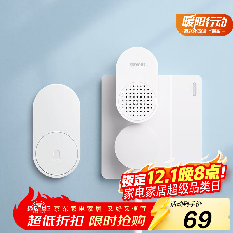 海得曼(Advent)门铃不用电池自发电无线门铃防水家用呼叫器FL-313¥ 69去领券