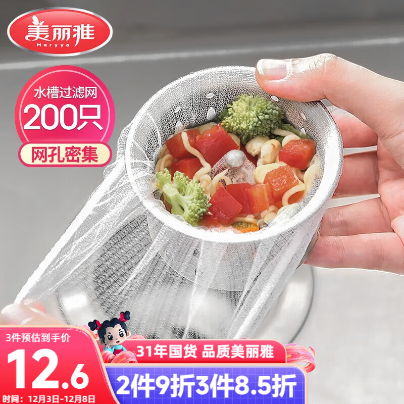 美丽雅 水槽过滤网200只一次性 厨房下水道水池地漏筛网¥ 14.9去领券