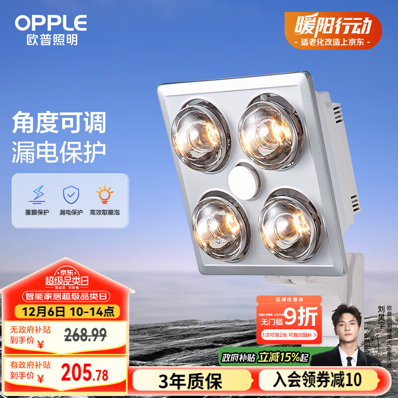 欧普(OPPLE)京东集采JC系列风暖浴霸S3 国家补贴抱抱暖变频恒温除菌浴霸 京耀¥ 567.9去领券