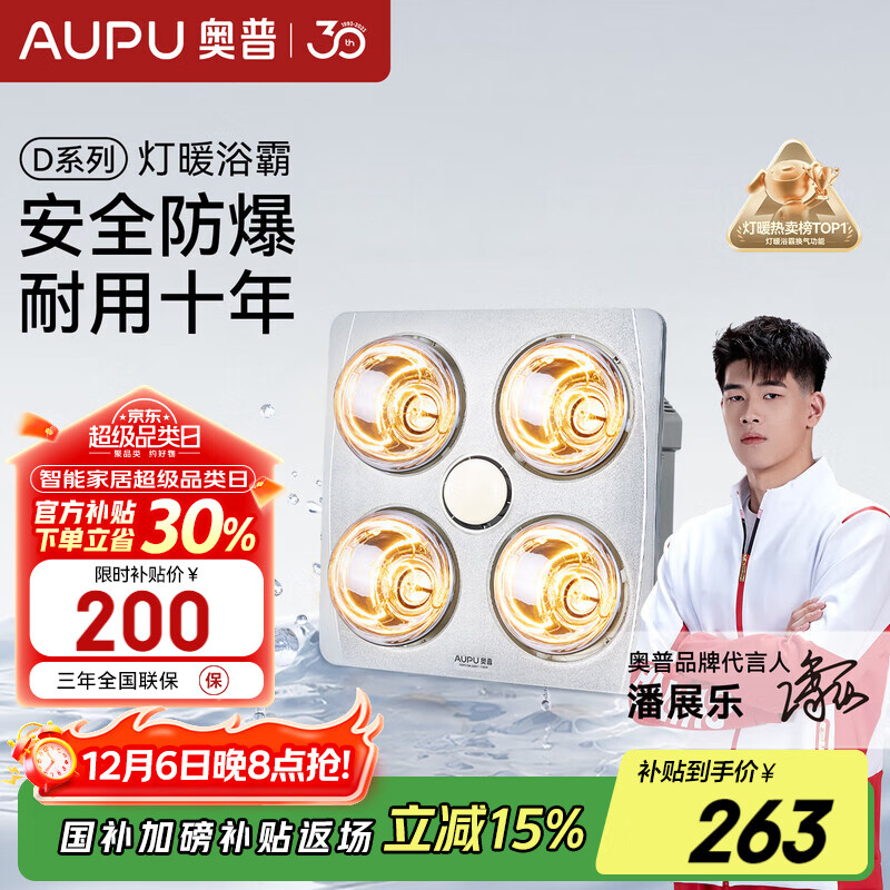 奥普【政府补贴15%】 浴霸灯暖照明一体取暖灯排气一体机310A¥ 278.1去领券