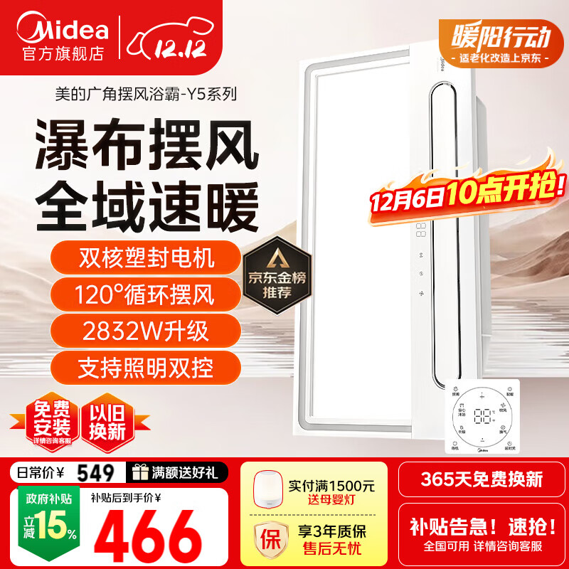 美的(Midea)浴霸暖风照明排气一体摆风速暖浴室取暖器卫生间灯集成吊顶Y5触摸¥ 494.1去领券