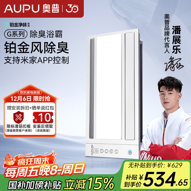 奥普(AUPU)智能浴霸S628M浴霸 铂金净味除臭 智能控制 强弱风暖无线遥控¥ 566.1去领券