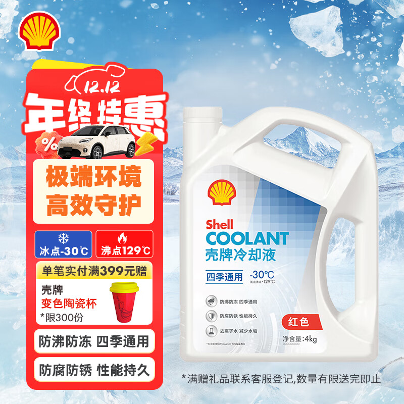壳牌(Shell)长效防冻液 汽车冷却液 四季通用 -30℃ 4kg (红色) 养车保养¥ 50去领券