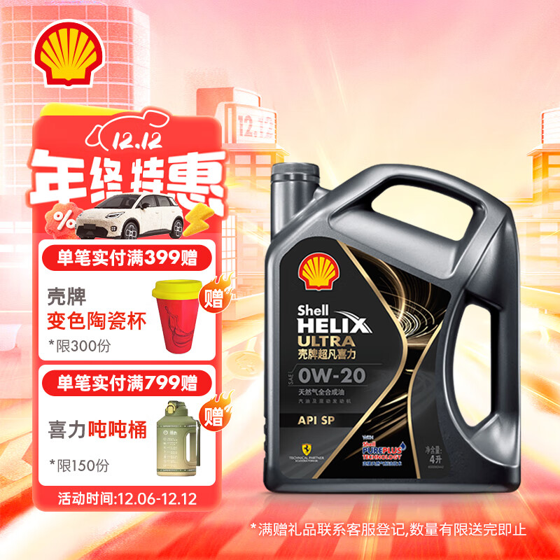 壳牌(Shell)全合成汽机油0w-20(0w20) API SP级 4L 都市光影版灰壳 京东养车¥ 232去领券