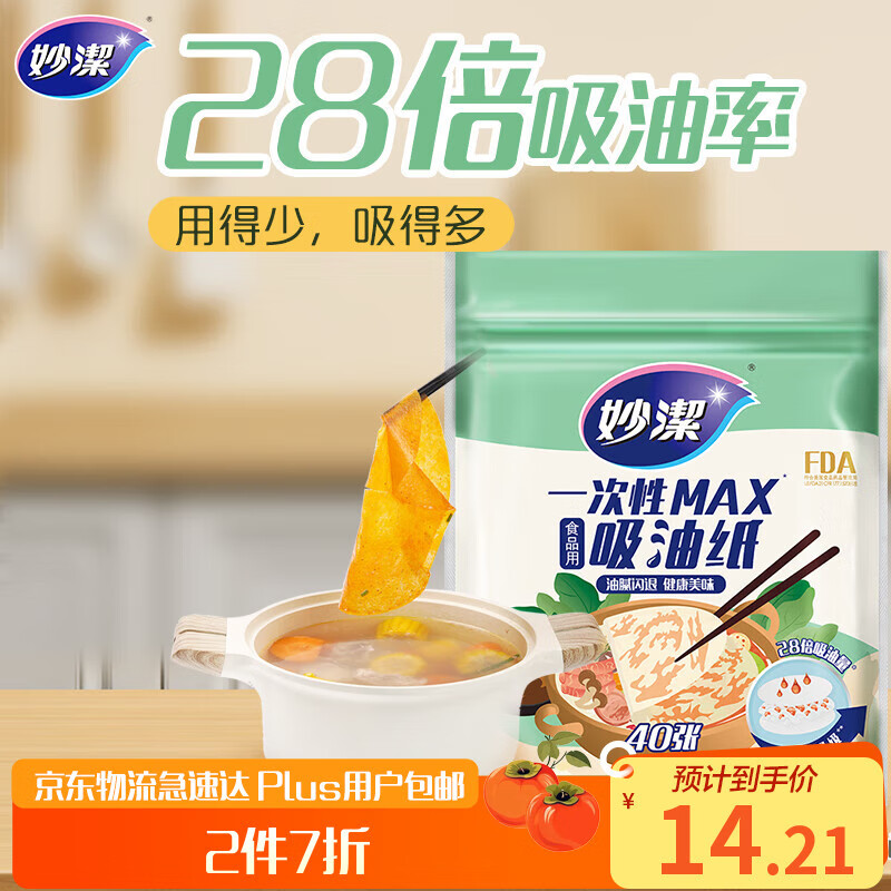 妙洁 一次性MAX吸油纸 40张 吸油量加强 食物煲汤厨房用品¥ 20.3去领券