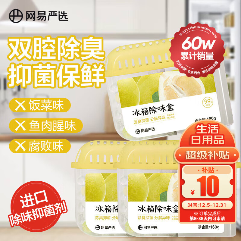 网易严选冰箱除味盒除味剂除臭剂活性炭食物防串味清新柚子3盒装¥ 34.9去领券