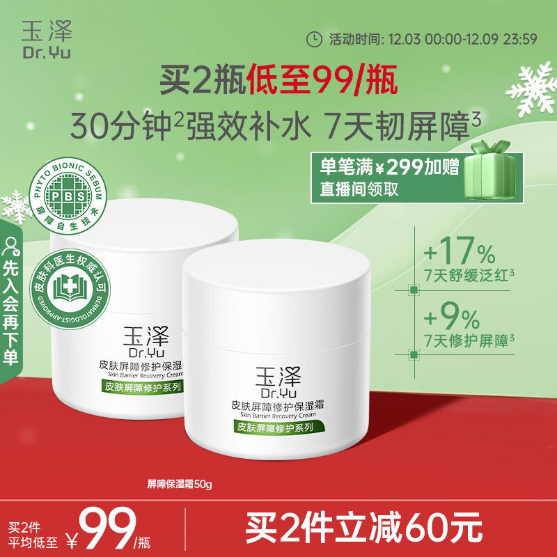 玉泽(Dr.Yu)皮肤屏障修护保湿霜50g(舒缓面霜补水保湿 敏感肌)圣诞节礼物¥ 113去领券